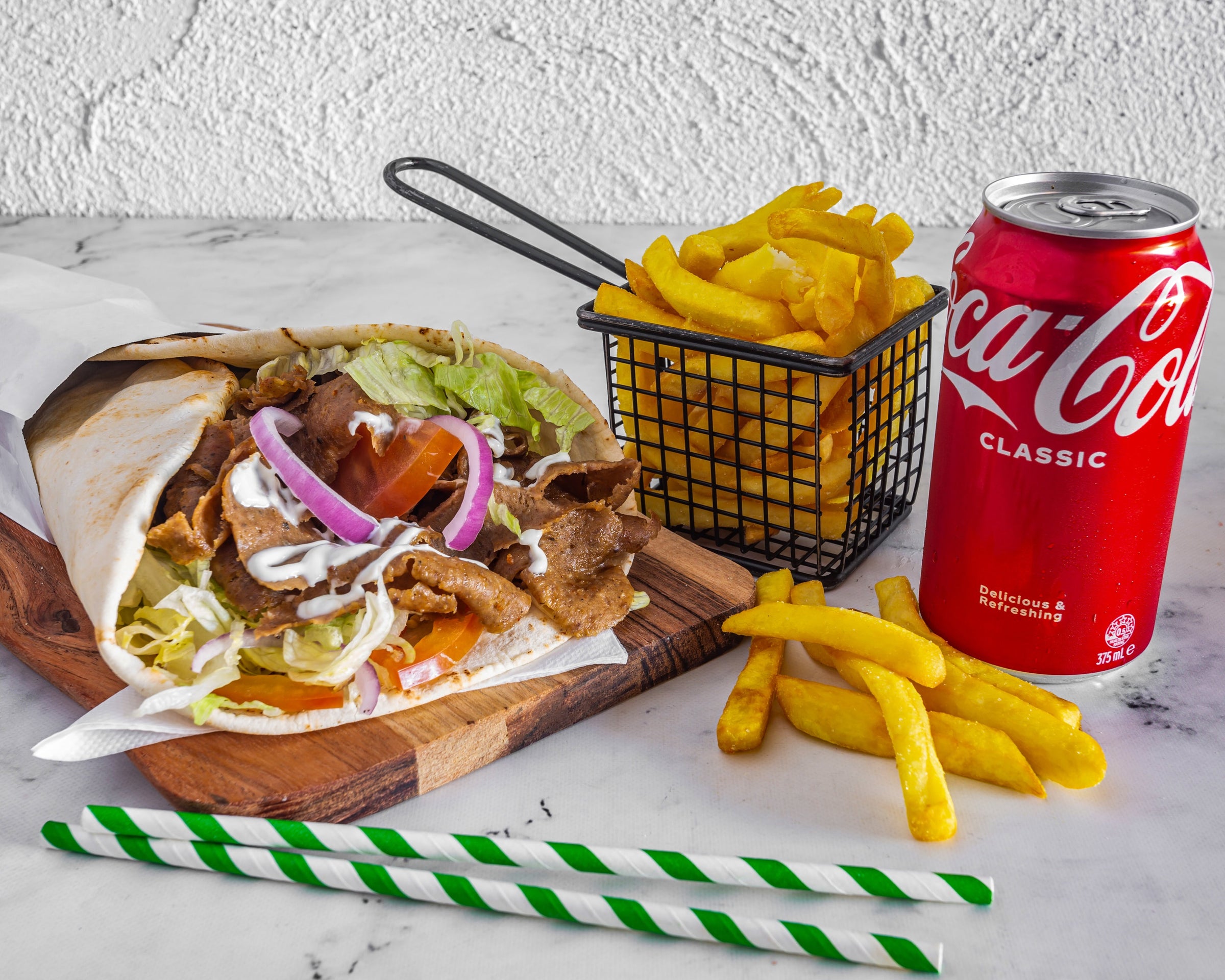 Kebab Pequeno + Batata + Bebida – Sanduíche de kebab pequeno com batata e bebida
